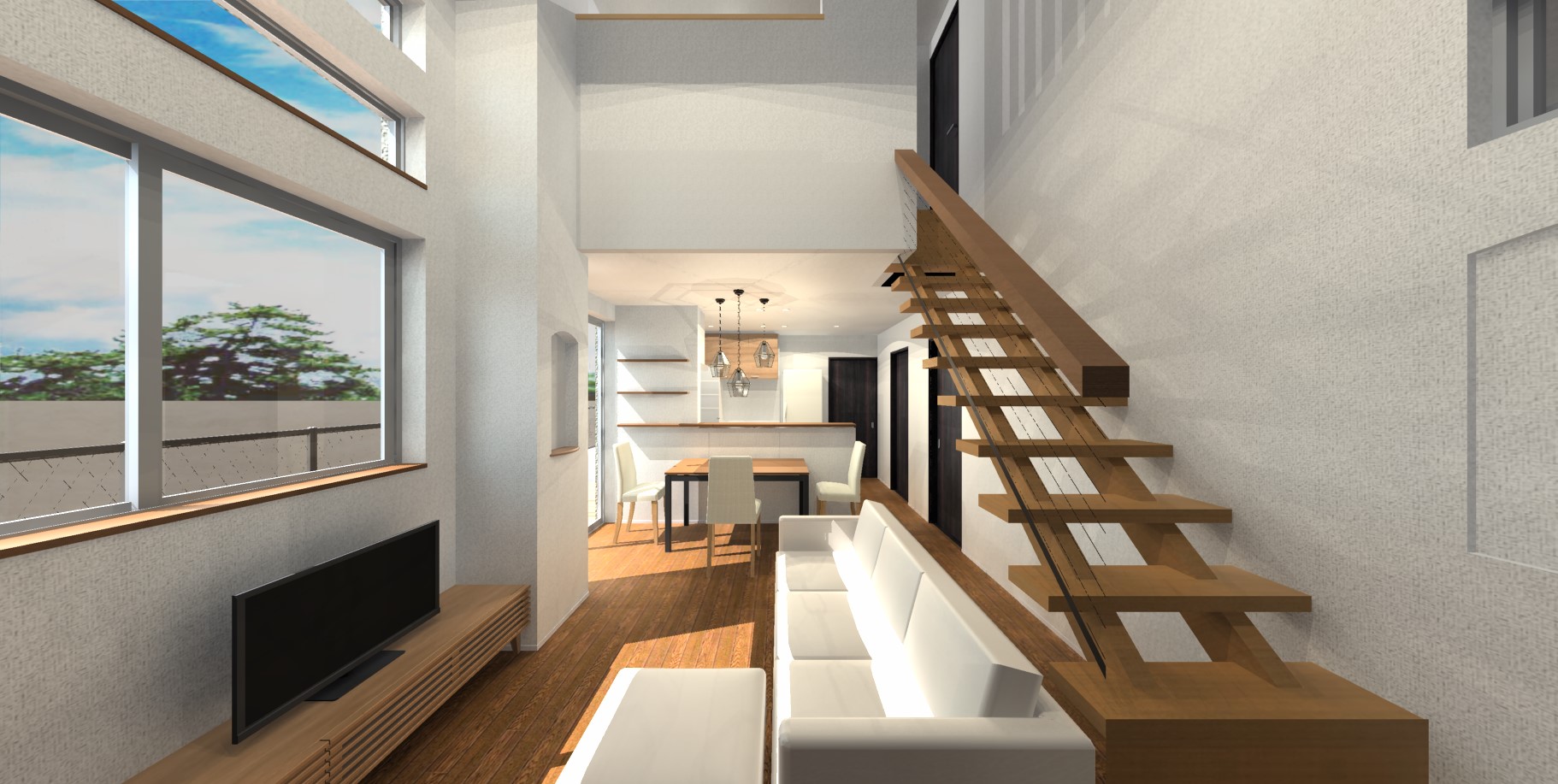 ・天井高さ4mの吹抜リビング