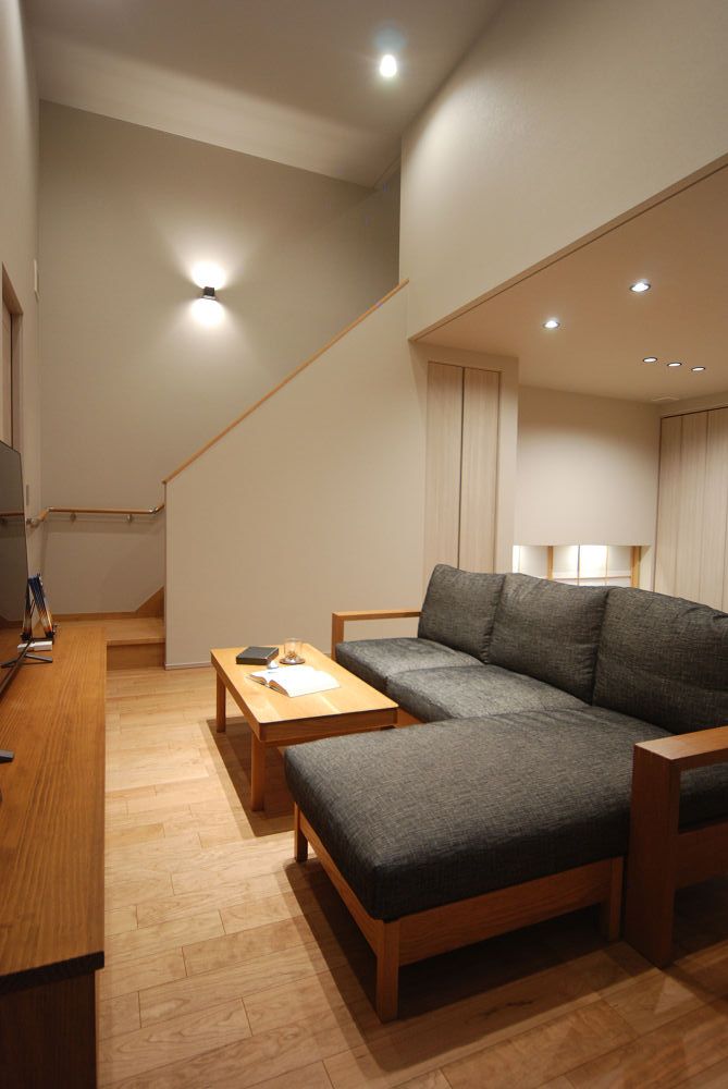 吹抜のリビングは2階の寝室と一体的で開放的な間取り。