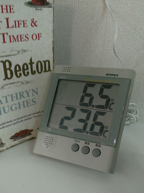 上段は外気温、下段は室内温度です。
