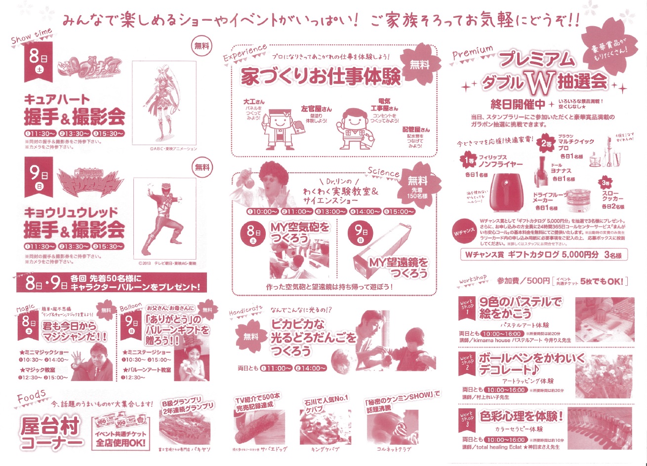 ヒーロー握手会は、8日がキュアハート、9日がキョウリュウレッド。