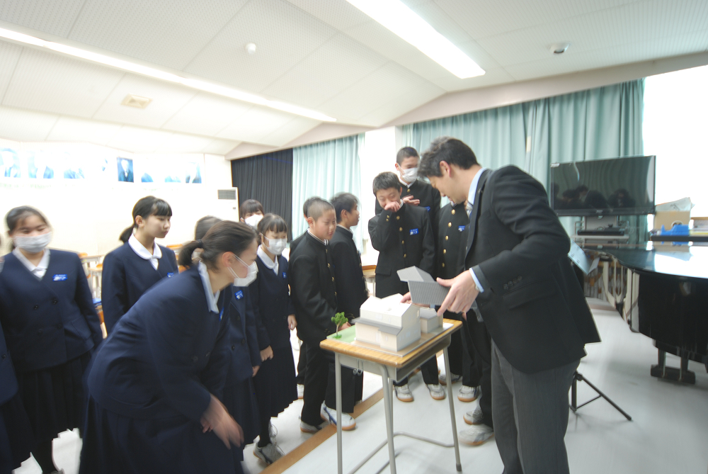 今回は住宅の模型も持参しましたところ、生徒さんからは興味深く見て頂きました。