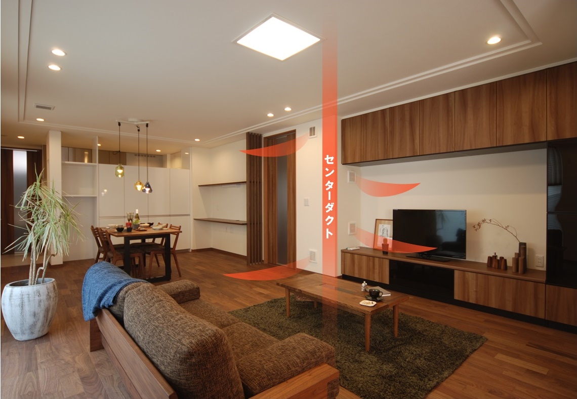 センターダクト式の換気方式で、室内の空気をいつまでもきれいに保つことができるという点が他の家づくりとは全く異なります。