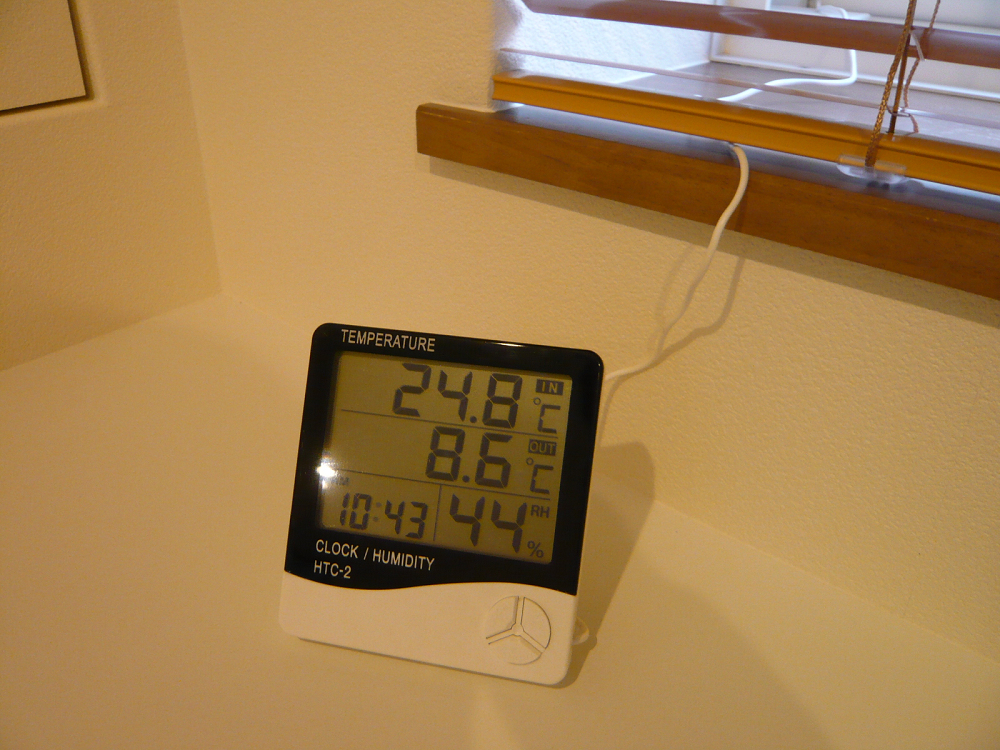 外気温センサーは窓から外に出しています。