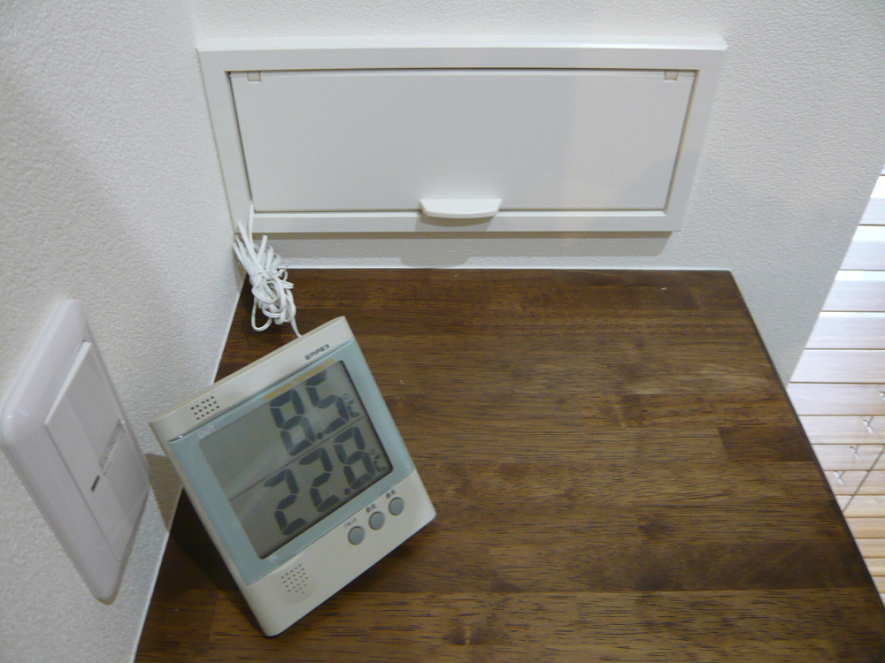 約50坪のお宅で、熱源は換気システムに組み込んだ1台のエアコン※だけです。(※エアコン本体は少々大きく見えますが、容量としては5kw程度…ですので一般的には広めのLDK用程度の能力のものです。)