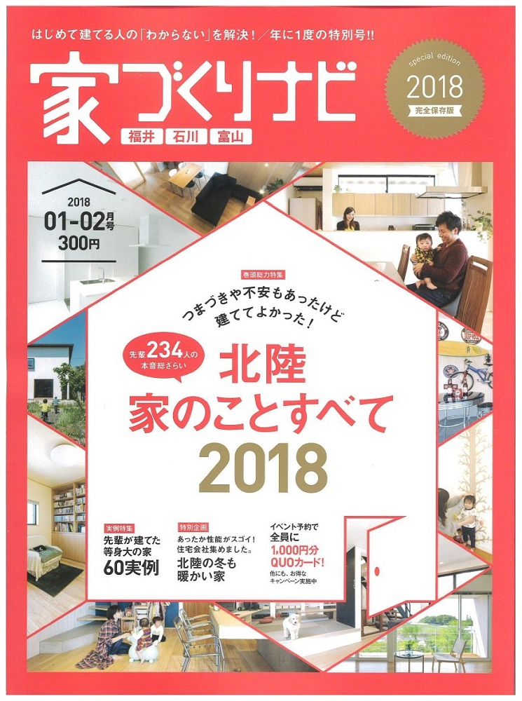 |HOME| 03<< 04/123456789101112131415161718192021222324252627282930>>05 2017/12/26 (Tue) 家づくりナビ2018 01-02号 発売 家づくりナビ2018年01-02号が発売になります。 今回の号は表紙が「赤」。 そして、過去最大の厚さ。456ページ! いつもの5割増…はオーバーですが、そのくらいの印象です。 ぜひ皆さま、冬休みのテキストにご利用くださいませ。 なお、当社の記事はP.260。 「北陸の冬も暖かい家」特集の中です。 雑誌・書籍 << prev 430 429 428 427 426 425 424 423 422 421 420 next >> カレンダー 03 2026/04 05 1 2 3 4 5 6 7 8 9 10 11 12 13 14 15 16 17 18 19 20 21 22 23 24 25 26 27 28 29 30 プロフィール HN:北川 剛 HP:北新建工 最新記事 打出の獅子舞 (04/08) 桜、満開です (04/03) 本郷中部 売土地情報 (03/24) 住まい LIVE FAIR 2026 のご案内 (03/10) 2/14、15 冬の住み心地体感会 (02/07) カテゴリー ごあいさつ ( 95 ) 体感見学会 ( 180 ) 体感ハウス詳細 ( 5 ) 涼温な家 工法 ( 15 ) 未選択 ( 188 ) 施工例 ( 52 ) 雑誌・書籍 ( 77 ) イベント ( 52 ) 住み心地感想 ( 14 ) 不動産情報 ( 14 ) 体感ハウス リポート ( 15 ) ZEH普及実績と目標の公表 ( 10 ) ブログ内検索 アーカイブ 2026年04月 (2) 2026年03月 (2) 2026年02月 (1) 2026年01月 (3) 2025年12月 (2) 2025年11月 (1) 2025年10月 (1) 2025年09月 (2) 2025年08月 (4) 2025年07月 (1) 2025年06月 (2) 2025年05月 (3) 2025年04月 (2) 2025年03月 (2) 2025年02月 (3) 2025年01月 (2) 2024年12月 (1) 2024年11月 (2) 2024年09月 (2) 2024年08月 (3) 2024年07月 (1) 2024年06月 (1) 2024年05月 (2) 2024年04月 (4) 2024年02月 (3) 2024年01月 (3) 2023年12月 (2) 2023年11月 (2) 2023年10月 (2) 2023年09月 (2) 2023年08月 (3) 2023年07月 (2) 2023年06月 (1) 2023年05月 (3) 2023年03月 (2) 2023年02月 (4) 2023年01月 (3) 2022年12月 (3) 2022年11月 (3) 2022年10月 (3) 2022年09月 (2) 2022年08月 (2) 2022年07月 (3) 2022年06月 (3) 2022年05月 (3) 2022年04月 (3) 2022年03月 (3) 2022年02月 (2) 2022年01月 (3) 2021年12月 (3) 2021年11月 (1) 2021年10月 (4) 2021年09月 (2) 2021年08月 (2) 2021年07月 (3) 2021年06月 (3) 2021年05月 (7) 2021年04月 (3) 2021年03月 (6) 2021年02月 (3) 2021年01月 (4) 2020年12月 (8) 2020年11月 (4) 2020年10月 (2) 2020年09月 (5) 2020年08月 (6) 2020年07月 (6) 2020年06月 (4) 2020年05月 (4) 2020年04月 (5) 2020年03月 (6) 2020年02月 (3) 2020年01月 (3) 2019年12月 (3) 2019年11月 (3) 2019年10月 (10) 2019年09月 (3) 2019年08月 (5) 2019年07月 (3) 2019年06月 (5) 2019年05月 (2) 2019年04月 (7) 2019年03月 (3) 2019年02月 (4) 2019年01月 (2) 2018年12月 (3) 2018年11月 (4) 2018年10月 (1) 2018年09月 (1) 2018年08月 (4) 2018年07月 (3) 2018年06月 (2) 2018年05月 (4) 2018年04月 (5) 2018年03月 (3) 2018年02月 (2) 2018年01月 (2) 2017年12月 (4) 2017年11月 (3) 2017年10月 (2) アクセス解析 グルメ