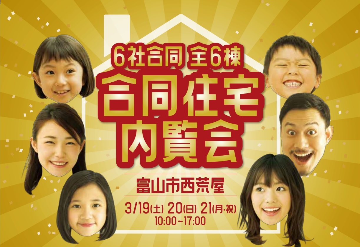 3月19日(土)~21日(月祝)の3日間、富山市西荒屋にて、6社合同の住宅内覧会が開催されます。