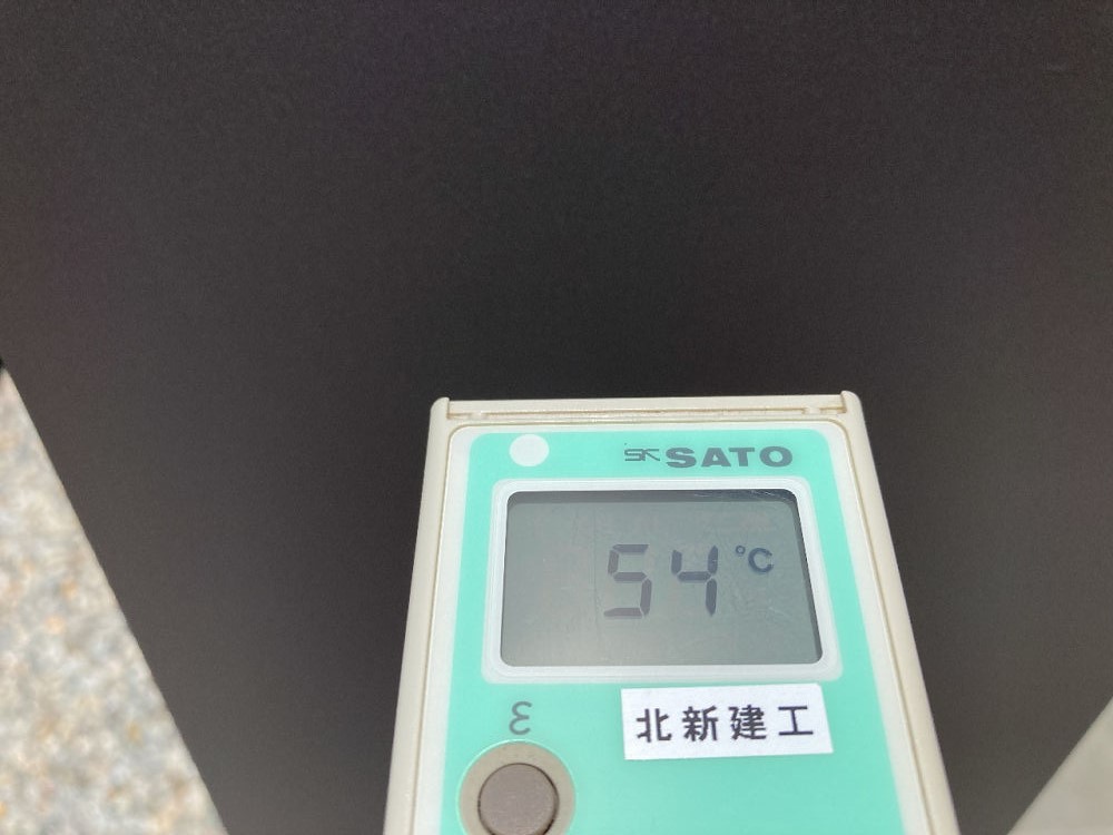 外壁の金属サイディングは、南の陽がよくあたる位置で54℃。