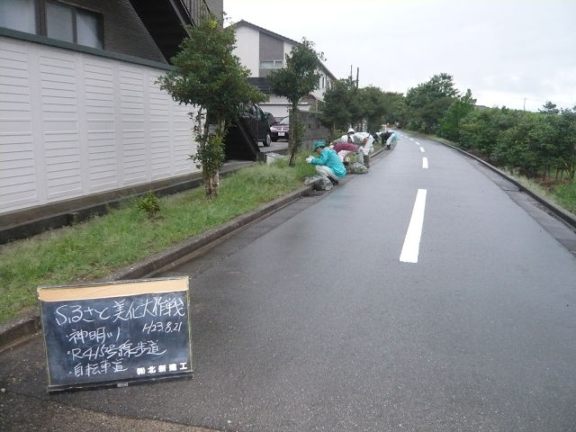 活動中――― 地域の皆さん方といっしょに除草中。