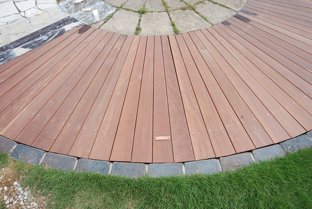 以前ご新築いただいたお客様からのご要望で「円形のウッドデッキ」を