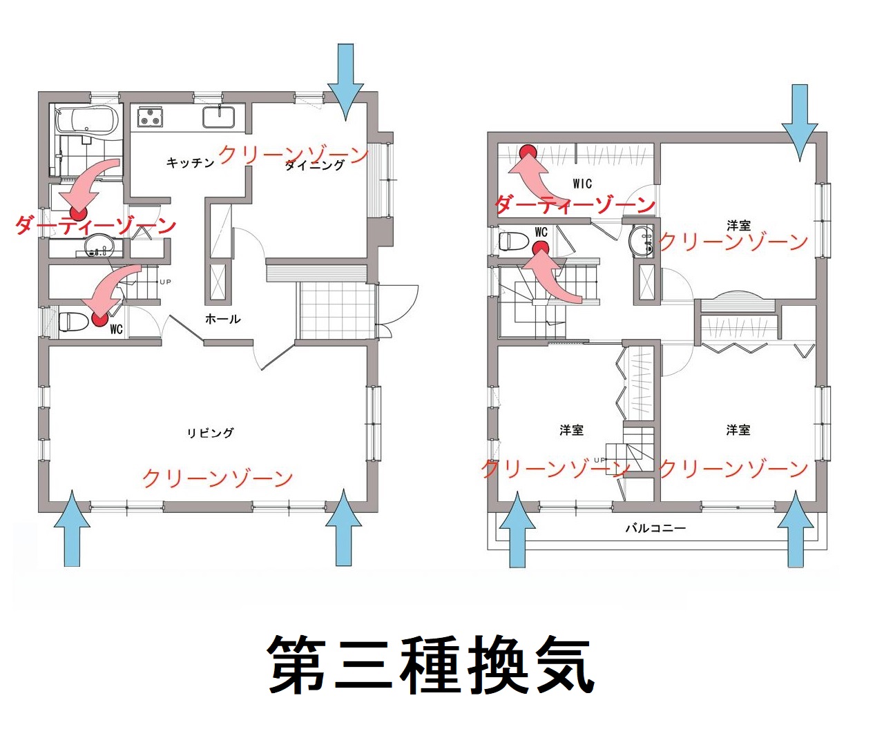 汚れた空気はその部屋で排出し、共用部へは流れにくい構造になっています。