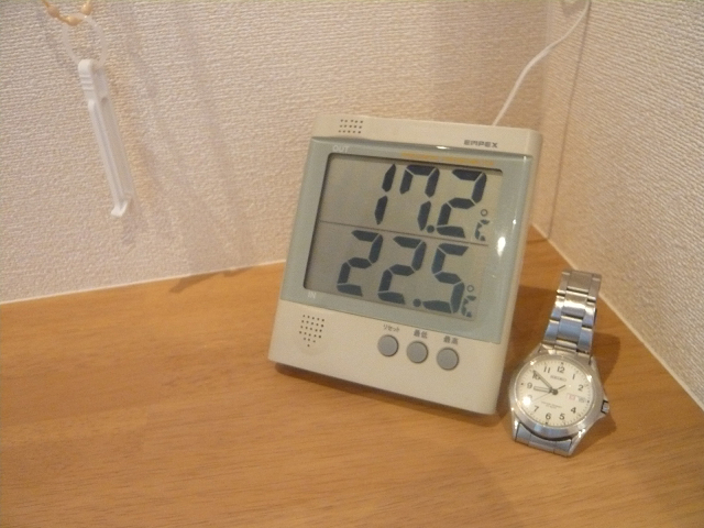 (温度計の上段は外気温、下段は室内の温度を示します。)