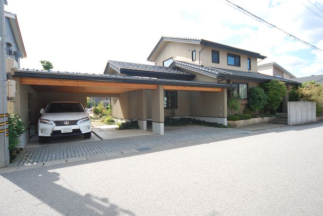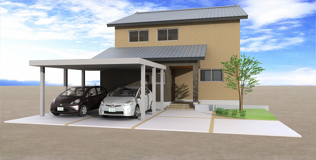 家の左前に普通車2台と軽四2台分程度のオープンガレージを増築しています。