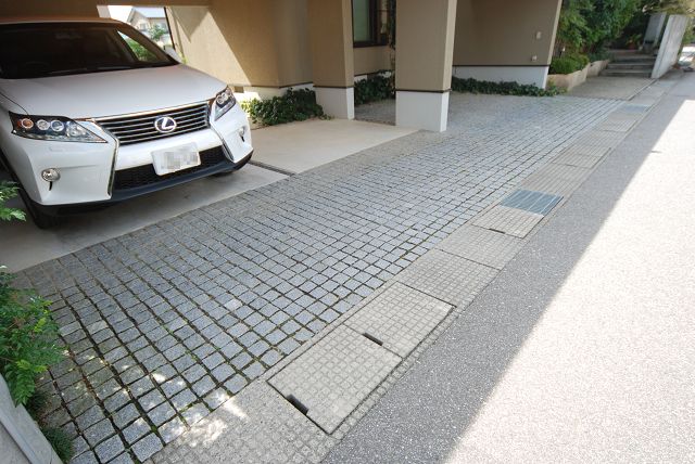 乗入れ部分のピンコロ石は、なんと施主様ご自身によるDIY。