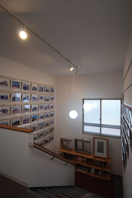 また、階段の大きな壁面を利用して、これまでの施工例の写真を展示しています。