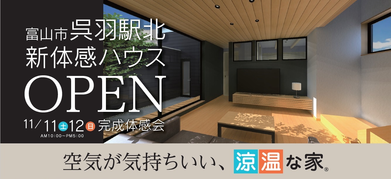 11月16日(土)、17日(日)の2日間、富山市大泉本町にて「涼温な家」完成体感会を開催します。