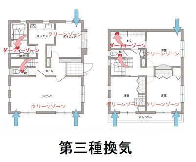 汚れた空気はその部屋で排出し、共用部へは流れにくい構造になっています。